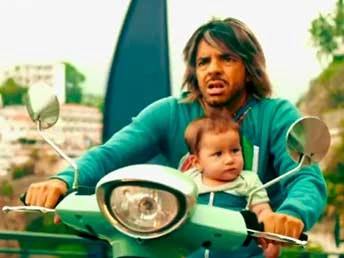 Decidido a devolver a su hija Maggie, la bebé, a su madre en Los Ángeles. Gracias a una foto descubre que ella trabajaba como profesora de aeróbica en un hotel, por lo que cruza ilegalmente la frontera y llega al lugar. Allí los trabajadores le explican que ella fue despedida al descubrirse que llevaba gente a la suite para tener sexo. Sin embargo, como Valentín no comprende el inglés, erróneamente piensa que le dicen que ella está en ese cuarto por lo que deja a Maggie cerca de la piscina del hotel y sube a buscarla. Así conoce a Frank, un director de cine que busca un doble de riesgo para sus películas. Cuando Maggie cae a la piscina, Valentín, a pesar del miedo, se arroja desde el balcón del último piso para rescatarla. Al ver esto, Frank le ofrece el trabajo para poder mantener a Maggie, ya que no puede regresar a México con ella. Valentín, quien ha comprendido al ver a la bebé en peligro, que la quiere y desea cuidarla, acepta este trabajo.